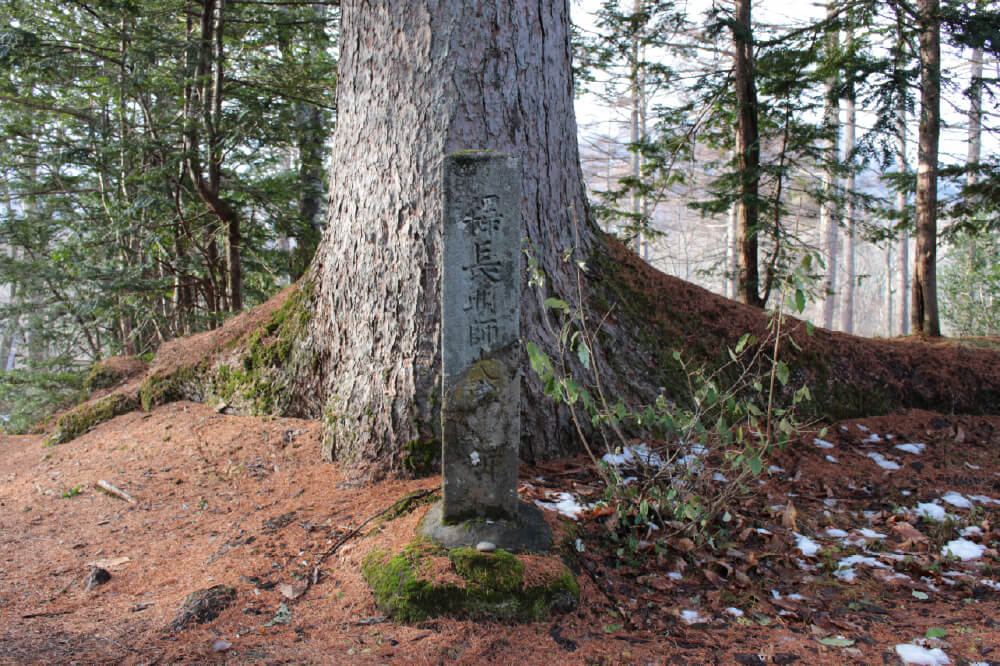 その昔、戸隠の参拝者はここから奥社のある戸隠山を眺め、祈りを捧げました。現在は、周囲に木々が生い茂り、奥社は見えなくなっています。
