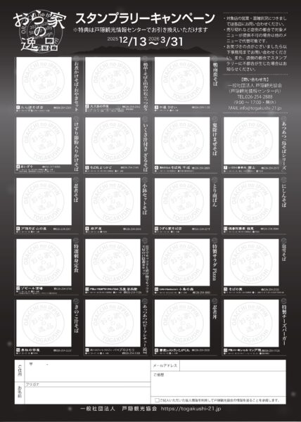 参加19店舗の「自慢の逸品」を食べ歩く冬季限定のスタンプラリーです。