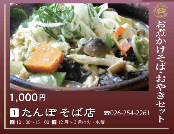 【対象メニュー】お煮かけそば・おやきセット(1,000円)