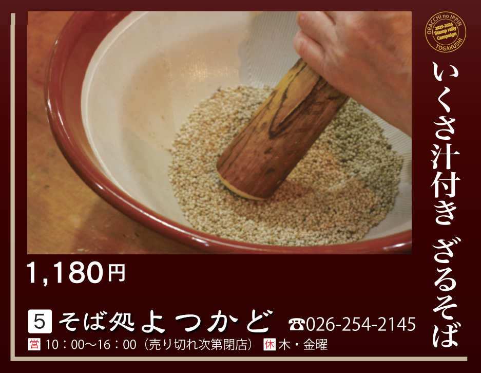【対象メニュー】いくさ汁付き ざるそば(1,180円~)