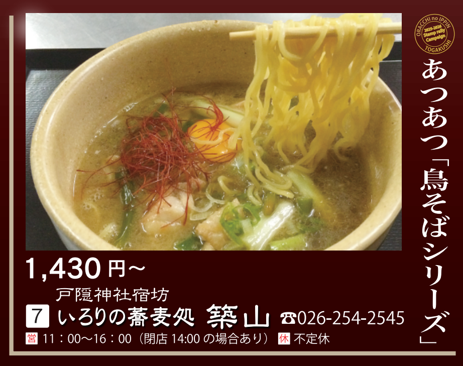 ❼戸隠神社宿坊 いろりの蕎麦処 築山
