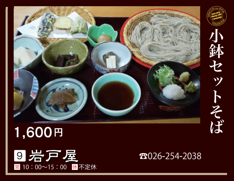 【対象メニュー】小鉢セットそば(1,600円)