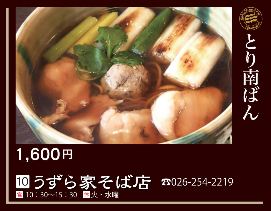 【対象メニュー】とり南ばん(1,600円)