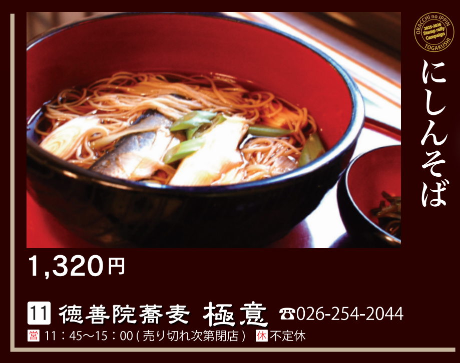 【対象メニュー】にしんそば(1,320円)