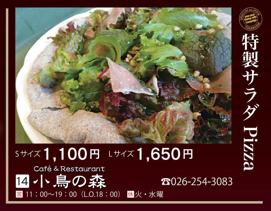 【対象メニュー】特製サラダPizza(Sサイズ1,100円・Lサイズ1,650円)