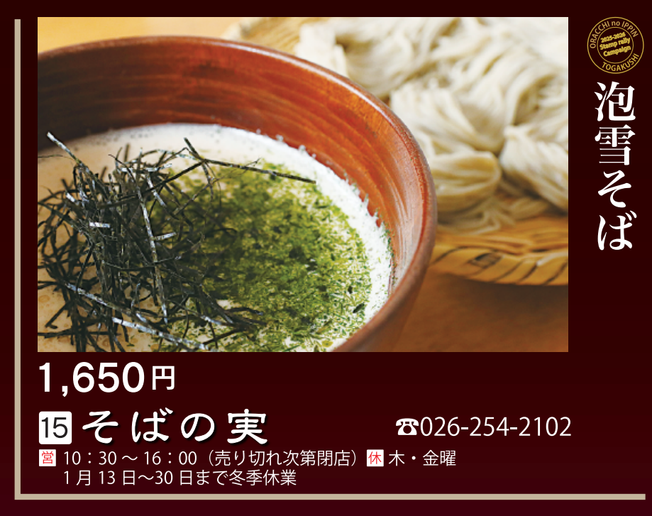 【対象メニュー】淡雪そば(1,650円)