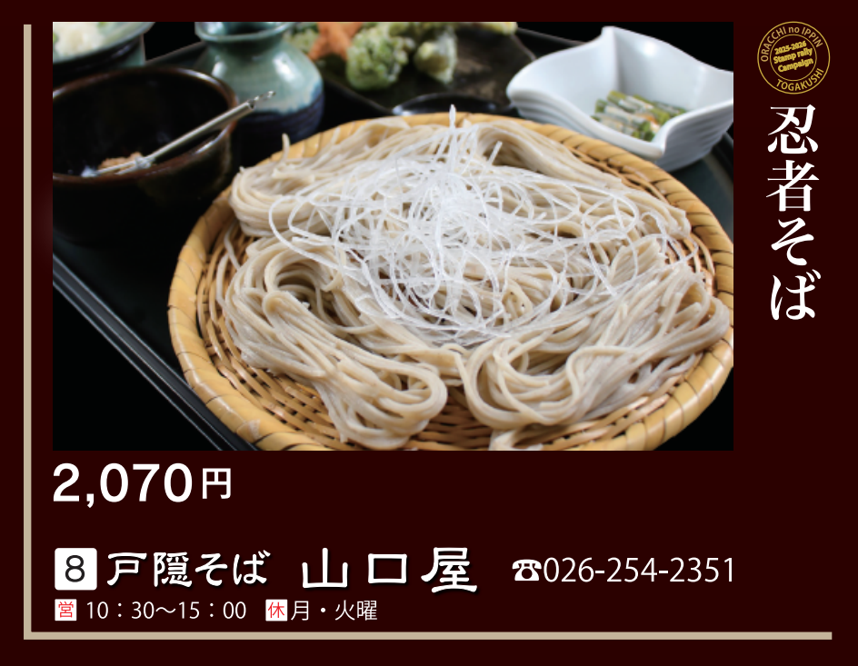 【対象メニュー】忍者そば(2,070円)