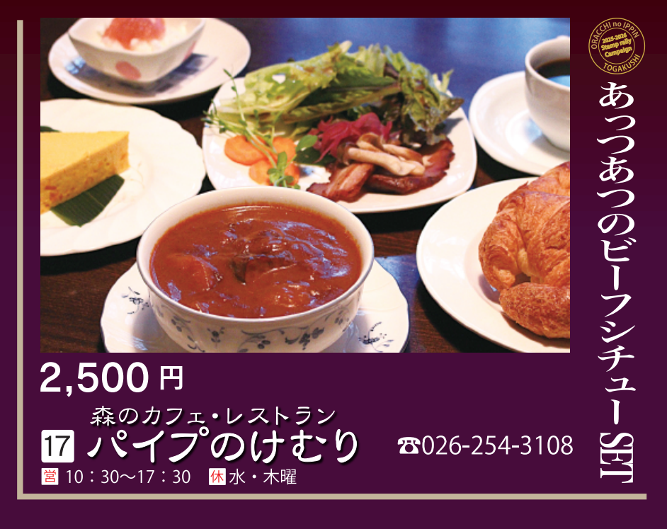 【対象メニュー】あっつあつのビーフシチュー(2,500円)