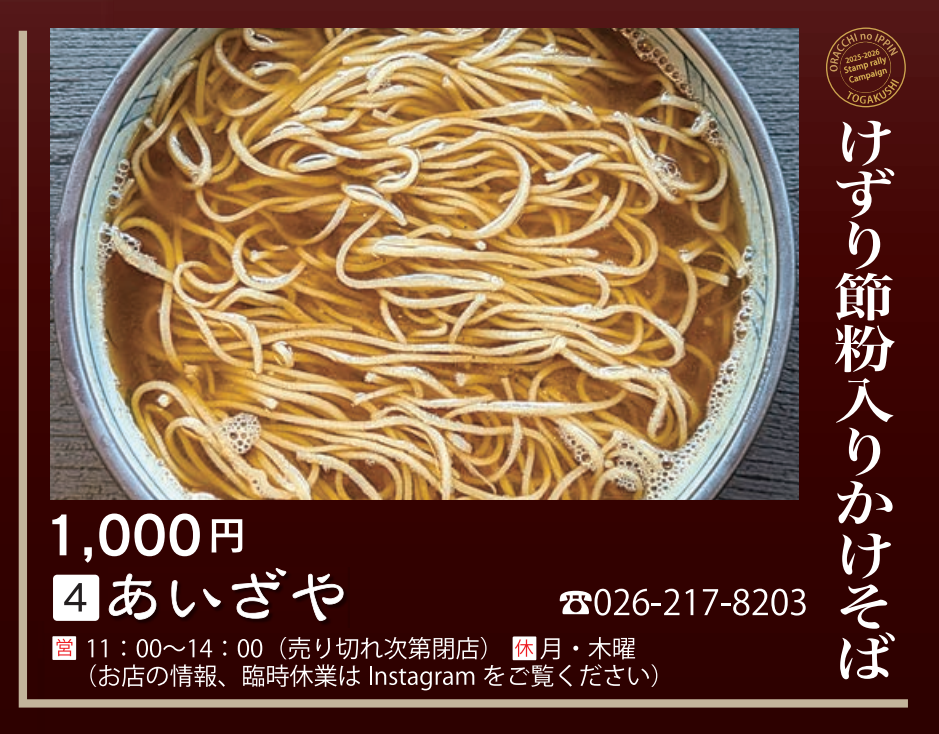 【対象メニュー】けずり節粉入りかけそば(1,000円)