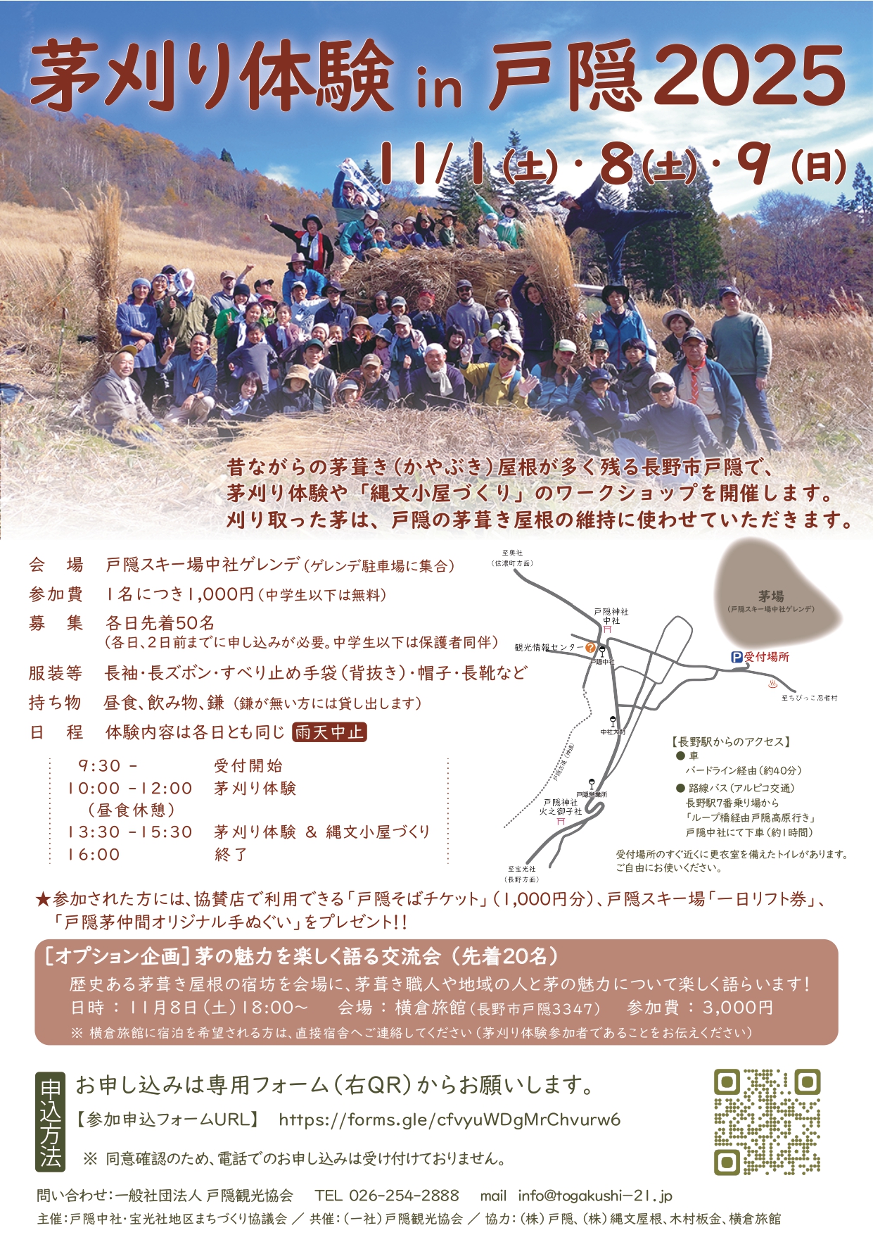 戸隠中社・宝光社まちづくり協議会主催の茅刈り体験イベントを開催いたします。