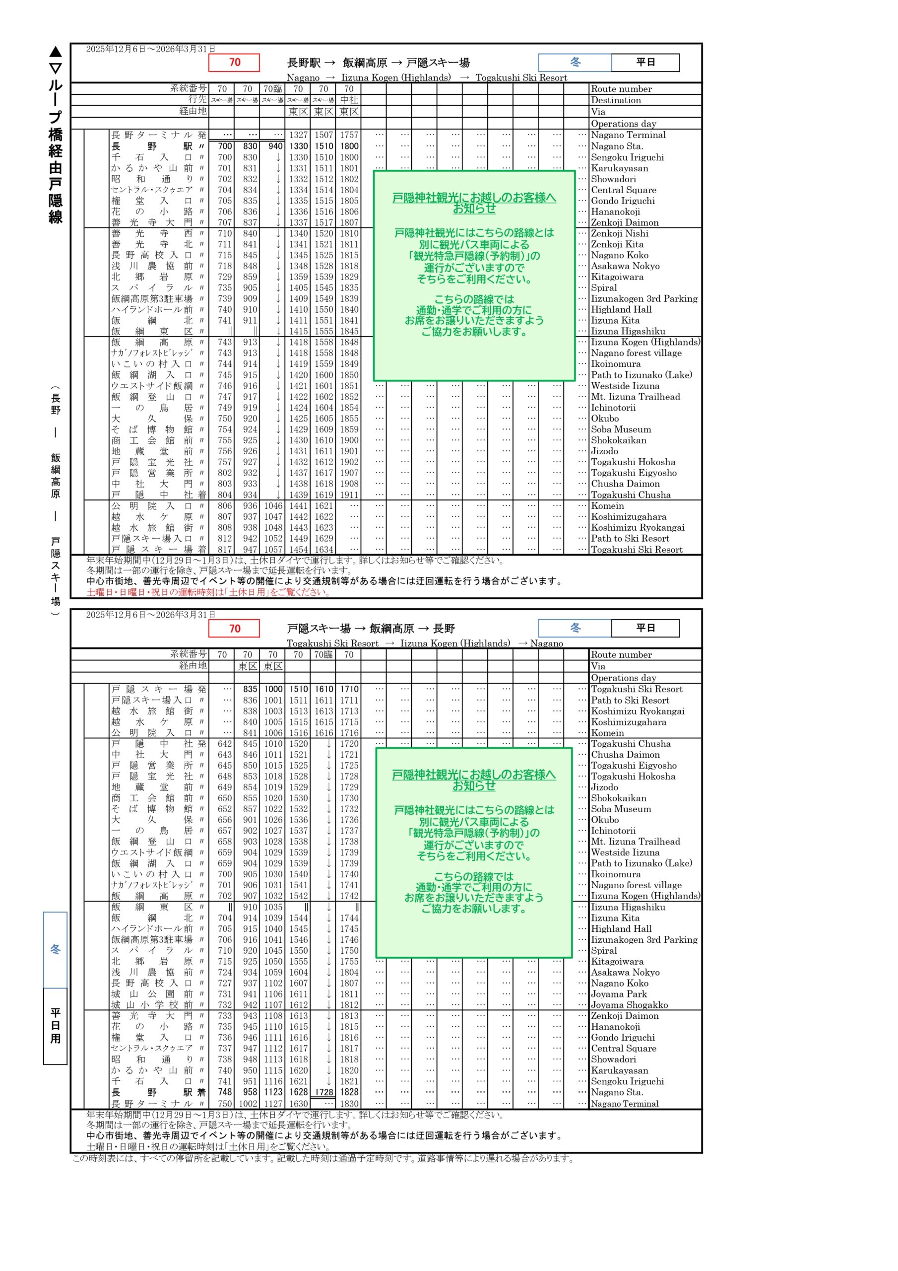 戸隠スキー場へお越しの方☞ 「【路線バス70】長野 - 戸隠高原」