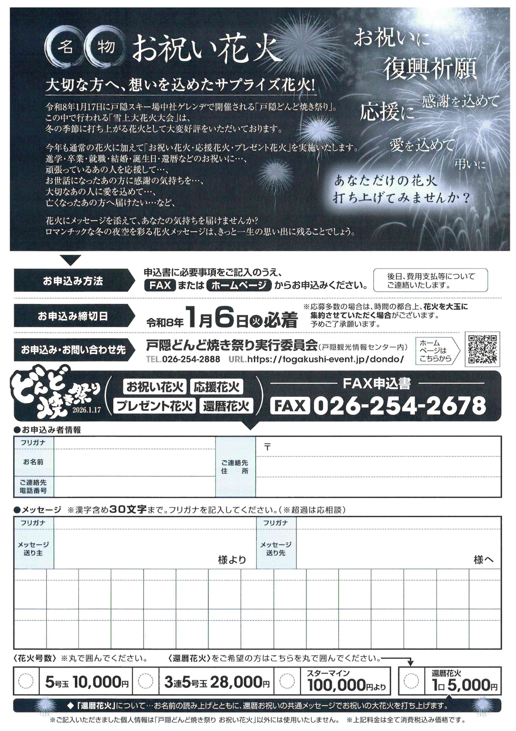 ☞【戸隠どんど焼き祭り】花火申込みフォーム