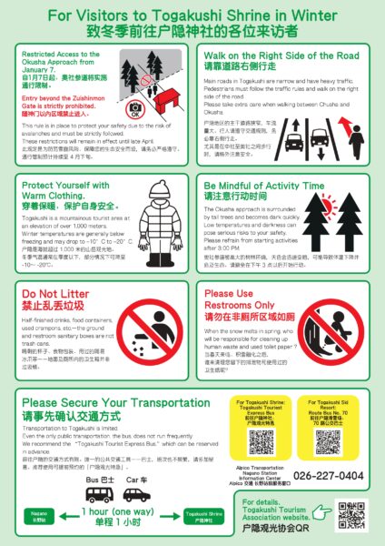 冬の戸隠観光において、皆様に知っておいていただきたいことをまとめたチラシを作成しました。