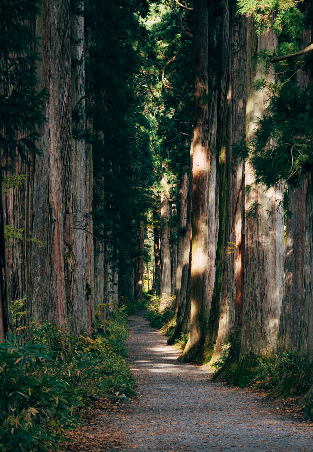 神道とは神々の道を意味する。戸隠の深い森を抜ける美しい道である。宝光社と中社を結ぶこの道は、歩くのに約30分かかる。